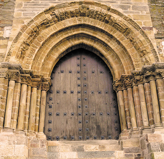 Iglesia de Santiago. En los años Santos Compostelanos esta puerta ofrece la posibilidad de ganar las Indulgencias Plenarias para aquellos peregrinos que por motivos de salud no puedan continuar su Camino hasta Santiago de Compostela. Se trata de una portada románica de transición.